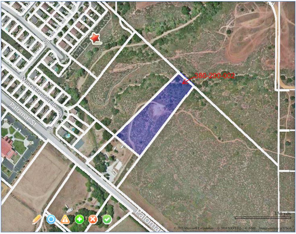 Exceptional 3.47 acres in Wildomar right off of Palomar Rd. Zoned Rural Residential single family and the General Plan Land use allows for Medium Density 2-5 per acre. Investors or builders come an see this outstanding opportunity. Low tax area and NO HOA. Panoramic views from pad site at top of Wildomar and Santa Rosa Plateau hills. Right near the freeway and growing residential and commercial development area. West side location is a valuable find. Don''t miss out on this nice size property. Water, sewer and electric at Palomar road. Must see to appreciate. Build custom home also.Bring us an offer! Motivated seller.